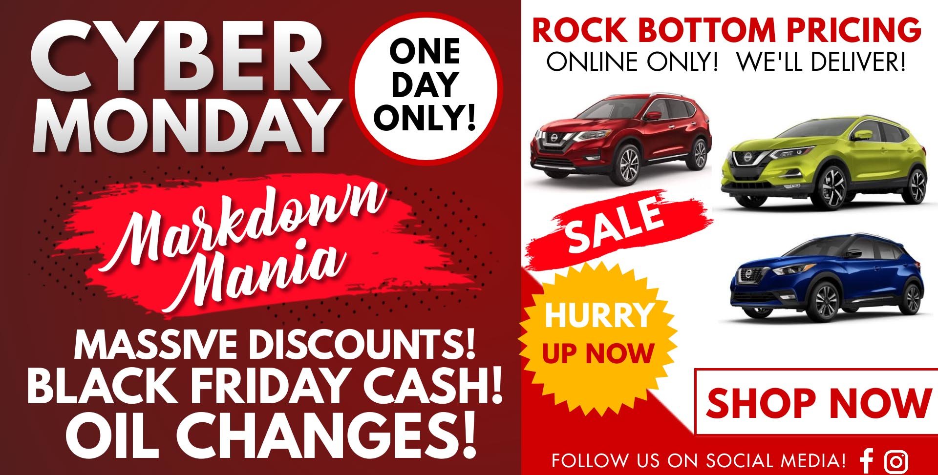 This Cyber Monday Kitchener Nissan is offering incredible savings on select 2020 Nissan vehicles! It is the BIGGEST Sale of the year and only ONE DAY! Massive discounts, Black Friday Cash, Oil Changes & More! You don't want to miss out on these deals! Check back on Monday, November 30th for some insane savings!